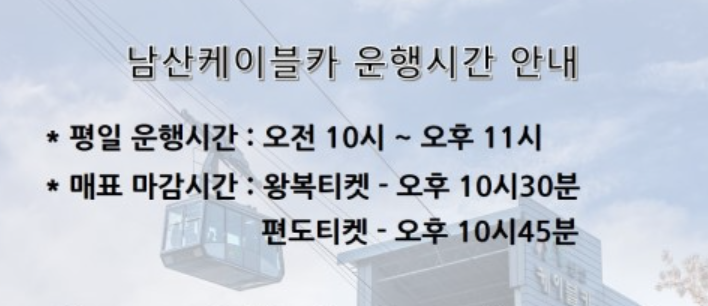 남산 케이블카의 운행 시간 조정 및 안내