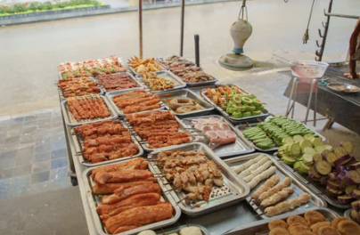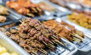 - 찹쌀밥과 바베큐: 간단하고 맛있는 길거리 음식입니다.
