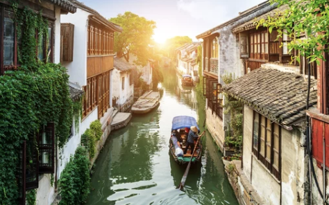 - 상하이에서 약간 떨어진 전통 수향 마을로, 운하와 아기자기한 다리들이 매력적인 곳입니다.