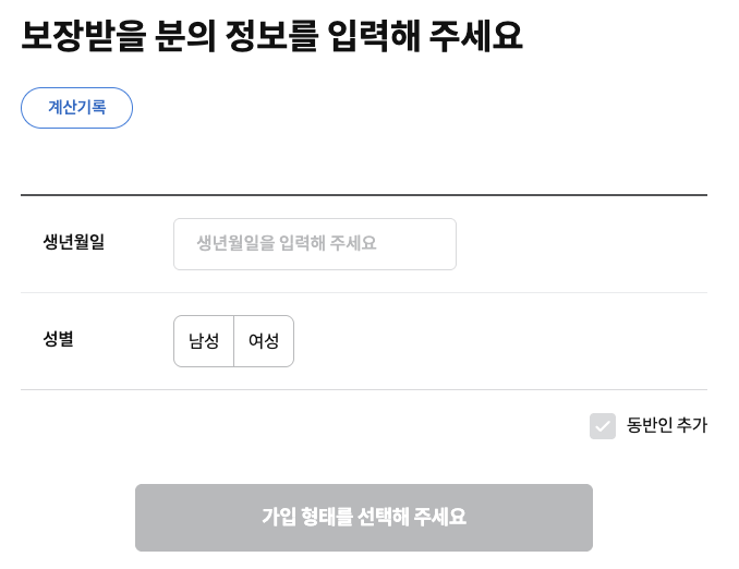 - 보장 범위 선택 (상해/질병/도난 등)