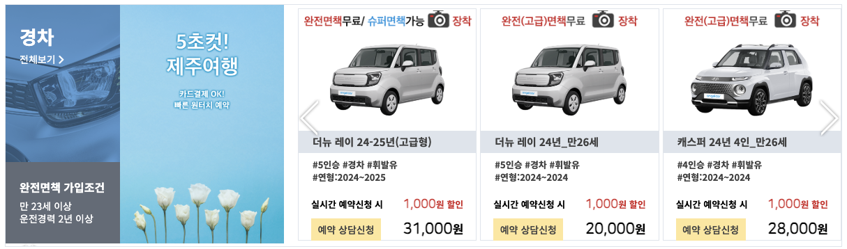 TIP: 렌트카 비교 플랫폼(예: 제주렌트카비교사이트, 카모아, 렌터카킹 등)을 활용하면