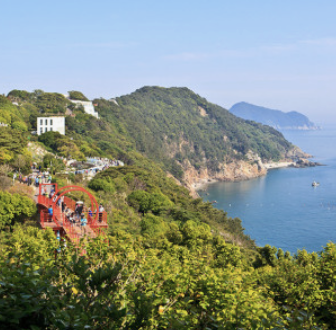 - 미륵산 정상까지 케이블카로 쉽게 오를 수 있음