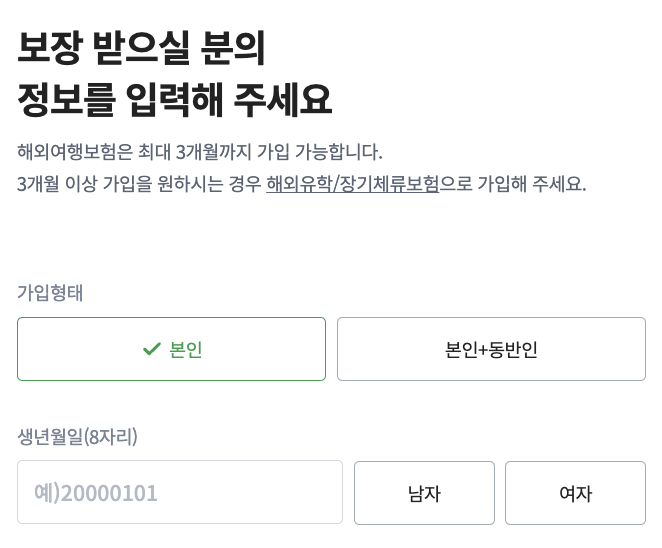 - 보험 가입 기간: 여행 일정에 맞춰 1일부터 최대 3개월까지 가입 가능