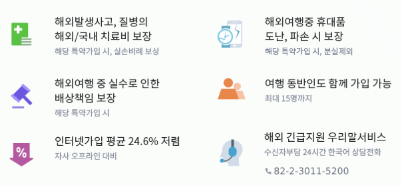 간편하고 빠른 가입 절차로 여행 준비에 꼭 필요한 상품입니다.